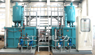 原水(生水)加凝聚剂,加助凝剂装置;循环水加稳定剂 (缓蚀剂),加阻垢剂,加杀菌装置;起动锅炉房加氨,加磷酸盐装置;凝汽器硫酸亚铁镀膜装置.单元式的组合形式一般为一箱一泵,一箱二泵,二箱二泵,二箱三泵 ,其系统与炉内加药装置类同.